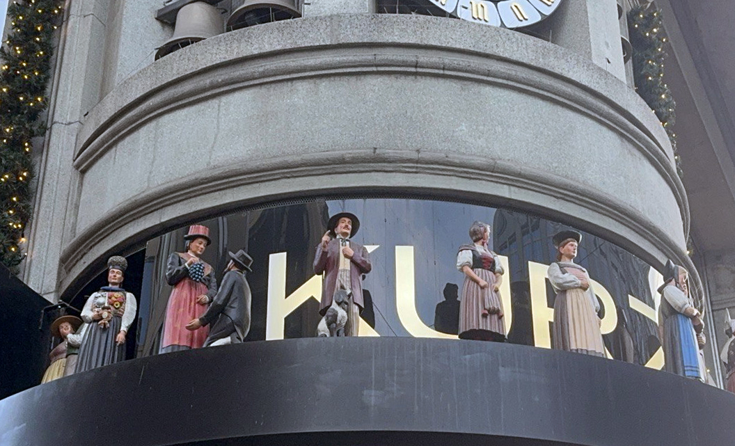 Jojo invites you to enjoy the melodies of the Carillon Kurz in Zurich on Bahnhofstrasse and admire the unique traditional Swiss figurines.